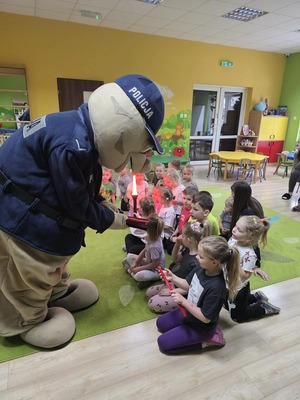 Dzielnicowi przygotowali krótkie scenki i ćwiczenia, w których dzieci mogły aktywnie uczestniczyć. Przedszkolaki z entuzjazmem odgrywały role pieszych i kierowców, ucząc się właściwych reakcji. Policjanci zaprezentowali również elementy wyposażenia służbowego, co wzbudziło ogromne zainteresowanie najmłodszych. Nie zabrakło także rozmów o tym, jak zachowywać się w kontaktach z obcymi osobami oraz dlaczego warto zawsze informować dorosłych o swoich planach i miejscu zabawy.