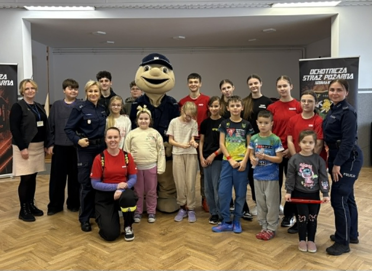 Funkcjonariusze omówili najważniejsze zasady bezpiecznego spędzania czasu na świeżym powietrzu, w tym korzystania z sanek, lodowisk oraz poruszania się po drogach w okresie zimowym. Dzieci dowiedziały się, jak unikać zagrożeń związanych z kontaktami z nieznajomymi oraz jak reagować w sytuacjach wymagających pomocy służb ratunkowych. Przedstawiciel Sanepidu przypomniał o zasadach higieny, zdrowego stylu życia oraz o tym, jak dbać o siebie w sezonie zwiększonej zachorowalności.